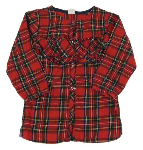 Červeno-farebná kockovaná šatová tunika s volánikom