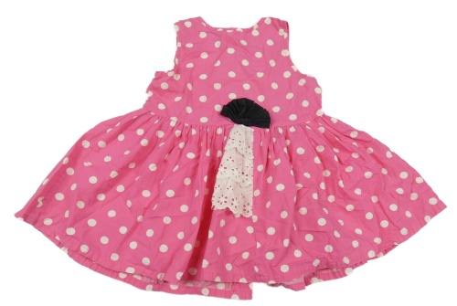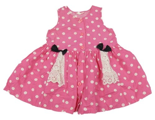 Ružovo-biele bodkovaná é plátenné šaty s madeirovými volániky