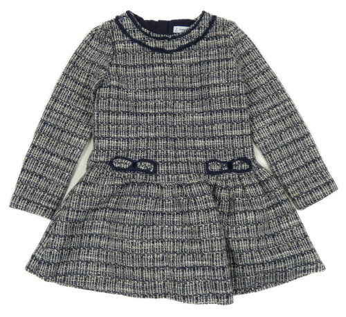 Tmavomodro-bielo-zlaté trblietavé pletené šaty Mayoral