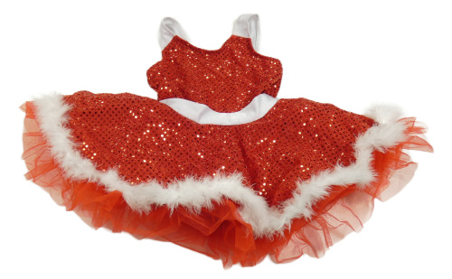 Kockovaným - Červené trblietavé slávnostné šaty s volánikmi