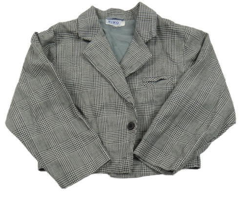 Čierno-svetlosivé kockované vzorované crop sako KIKO