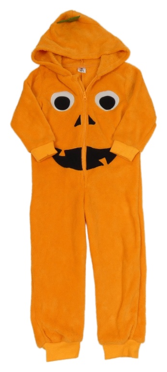 Kockovaným - Oranžová plyšová kombinéza s kapucí - tekvica