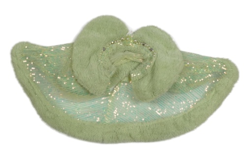 Kockovaným - Svetlozelený síťovano/kožešinový golier s flitrami a korálk y