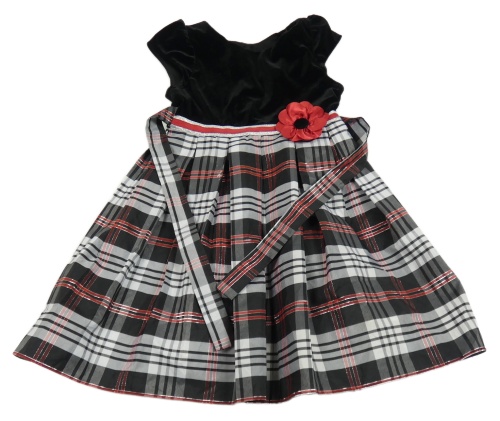 Čierno-sivé kockované slávnostné šaty s květem a opaskom