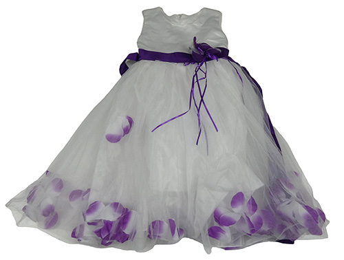 Bielo-fialové slávnostné šaty s kvetinou a opaskom