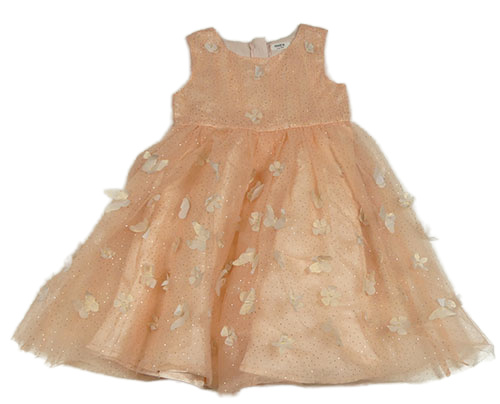 Broskvovo-zlaté bodkovaná é tylové slávnostné šaty s 3D kvety max
