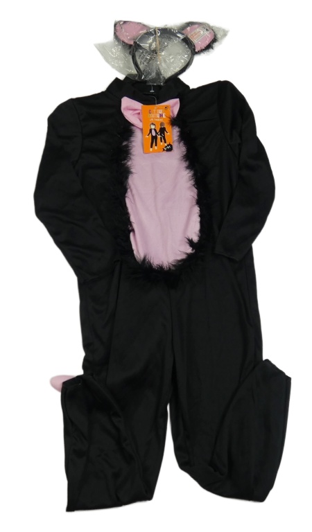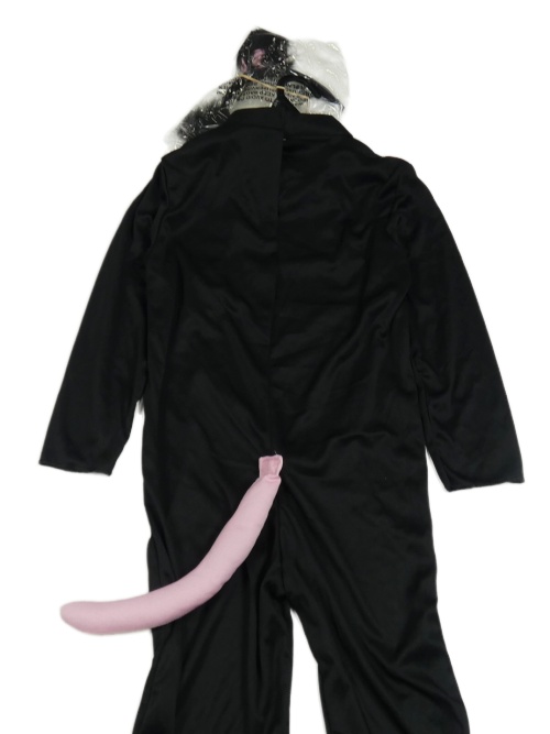 Nové - Kockovaným - 2set - Čierny overal s mašlou a ocasem + čelenka - mačka