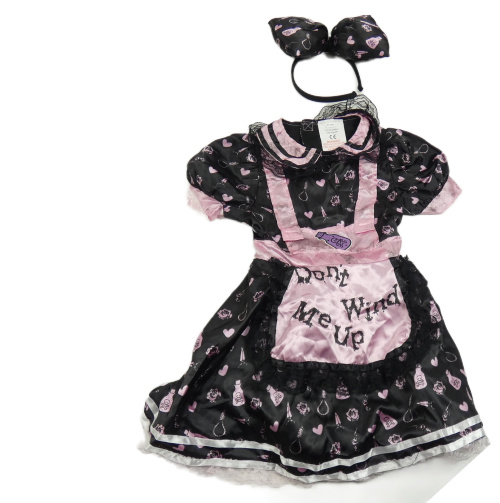 -Kockovaným 2set- čierno-ružové šaty so zástěrou a obrázky+ čelenka