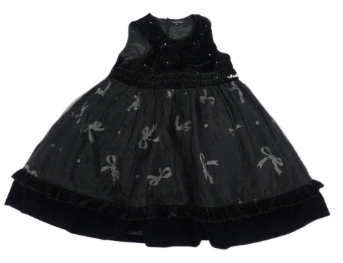 Čierne sametovo/organzové slávnostné šaty s kamienkami a mašľami