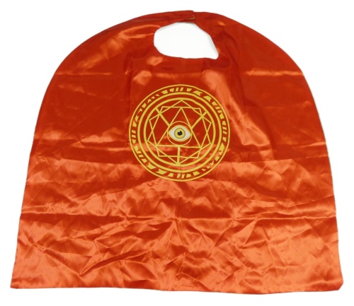 Kostým - Červený/zelený saténový plášť s potlačou