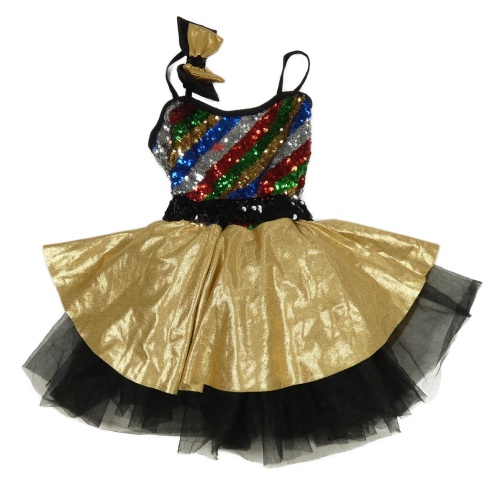 Kostým - Černo-zlato-barevné šaty na tancování s flitrami a mašlou a všitým body