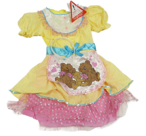 Nové - Kockovaným 2set - Žlto-biele kockované saténové šaty s medvědy + čelenka