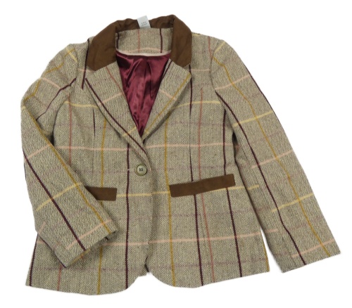 Béžovo-hnedo-ružové kockované trblietavé vlnené sako Tu
