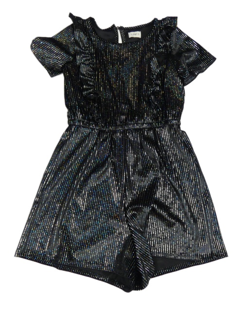 Čierno-strieborný pruhovaný zamatový kraťasový slávnostný overal s volánikmi F&F