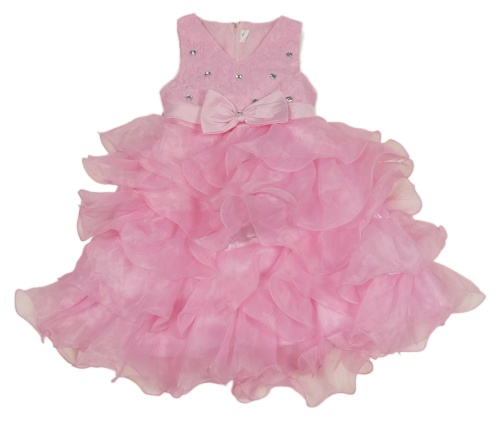 Svetloružové krajkovo/organzové vrstvené šaty s kvetmi a korálky/kamínky a mašlou