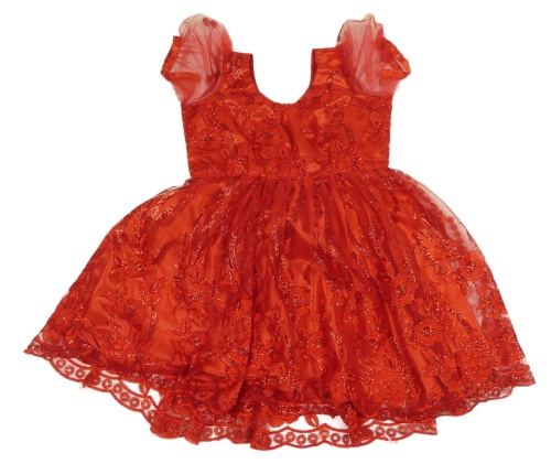 Červené tylové slávnostné šaty s flitrami a kvetmi