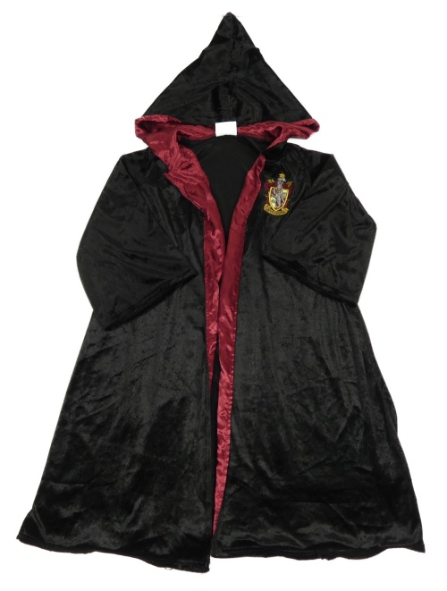 • Kostým - Černo-vínový sametovo/saténový plášť s erbem - Gryffindor - Harry Potter a kapucňou