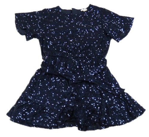 Tmavomodrý flitrový slávnostný kraťasový overal s opaskom River Island