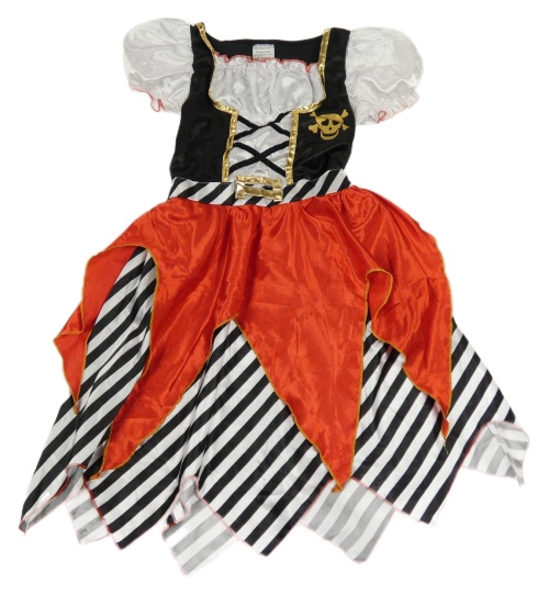 Kostým - Červeno-černo-bílé saténové šaty - pirátka