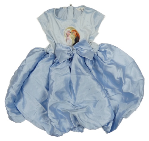 Nové - kockovaným - Svetlomodré plyšovo/saténové balonové šaty s Frozen a mašlou H&M