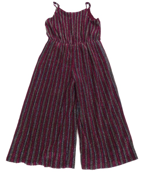 Čierno-vínovo-strieborný pruhovaný nohavicový culottes slávnostný overal M&S