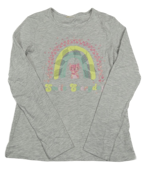 Svetlosivé melírované tričko s mačičkou a dúhou Kids