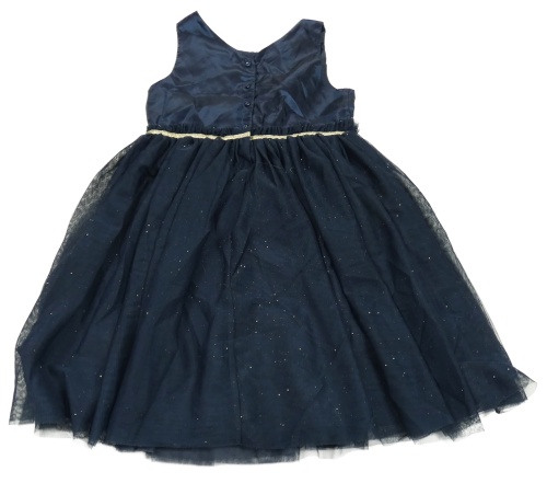 Tmavomodro-zlaté saténovo/tylové slávnostné trblietavé šaty H&M