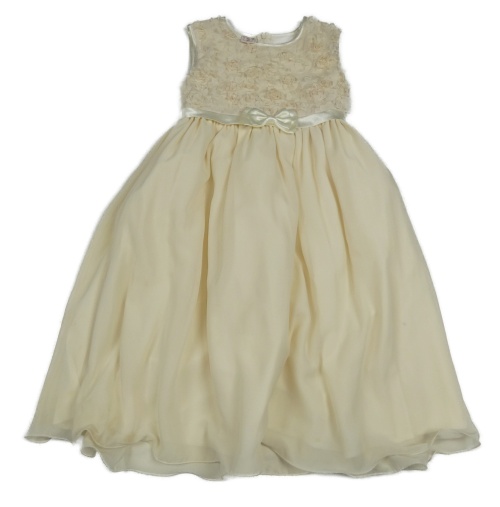 Smotanové slávnostné šaty s 3D kvety a mašlou