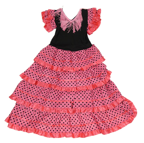Kockovaným - Ružovo-čierne vrstvené šaty s bodkami a strapcemi