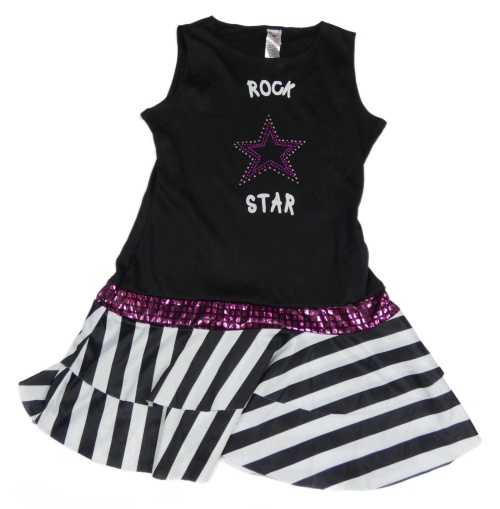 Kockovaným - Čierno-pruhované šaty s hvězdou z kamínků