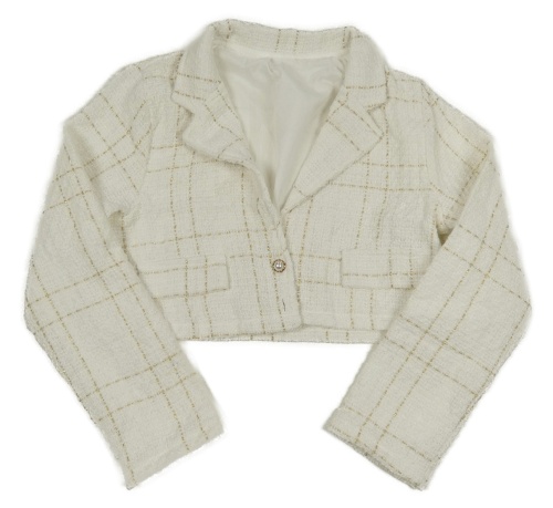 Bielo-zlaté kockované podšité crop sako Shein