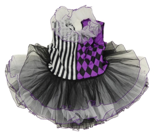 Kockovaným - Čierno-bielo-fialové šaty so vzorom a tylovou sukní