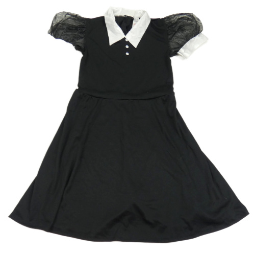 Kockovaným - čierne šaty s bielým golierikom a pavučinami na rukávech