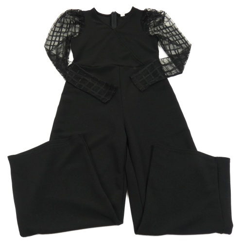 Čierny spoločenský nohavicový overal s tylovymi rukávy shein