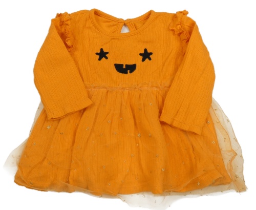 Kockovaným - Oranžové rebrované bavlnené šaty so síťovinou - tekvica