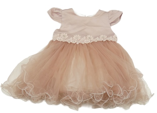 Světle-staroružové saténovo/tylové šaty s kvetmi