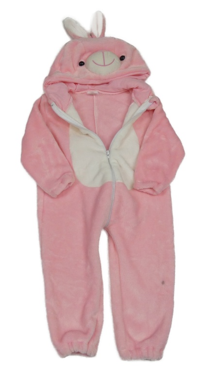 Kockovaným - Ružovo-biela plyšová kombinéza s kapucí - zajačik