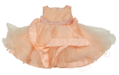 Marhuľové tylové slávnostní šaty s korálkami a opaskom