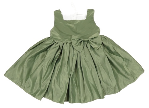 Olivové saténové slávnostné šaty s mašlou