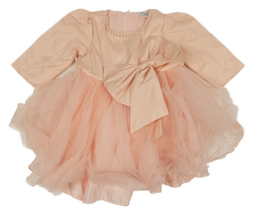 Broskvovo-svetloružové saténovo/tylové slávnostné šaty s mašlou a perlami