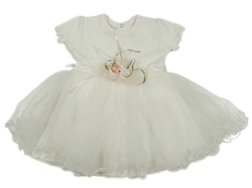Biele bavlněno/tylové slávnostné šaty s 3D květem s růžemi a pecičkami BULSEN