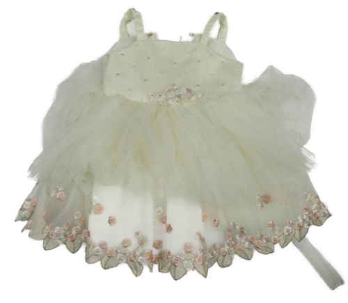 Smotanové tylové slávnostné šaty s výšivkami květů a korálkami
