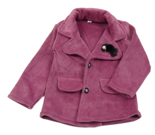 Tmavoružové rebrované plyšové zateplené sako s mašlou