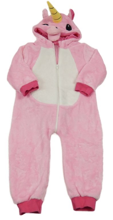 Kockovaným - svetloružová plyšová kombinéza s ocasem a kapucí - jednorožec