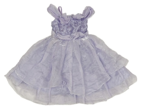 Lila saténovo/organzové slávnostné šaty s výšivkou a mašlou