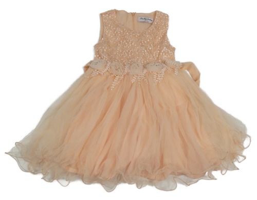 Svetloružové slávnostné tylové šaty s 3D kvety a výšivkami