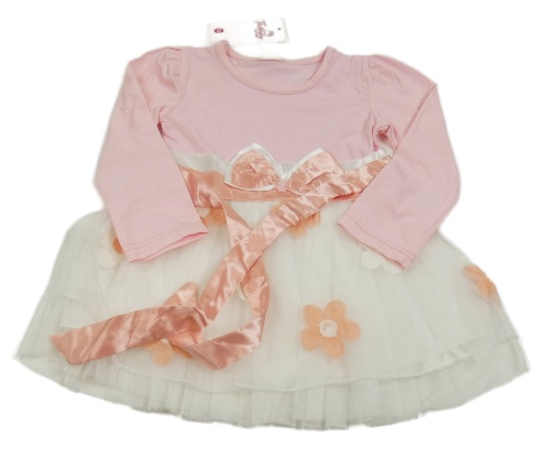 Nové - Svetloružová -biele slávnostné šaty s mašlou a kvietkami