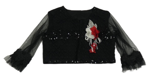 Čierne čipkové spoločenské bolerko a tylovými rukávy a 3D květem