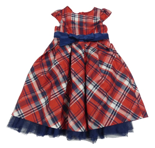 Červeno-tmavomodro-biele kockované šušťákové slávnostné šaty