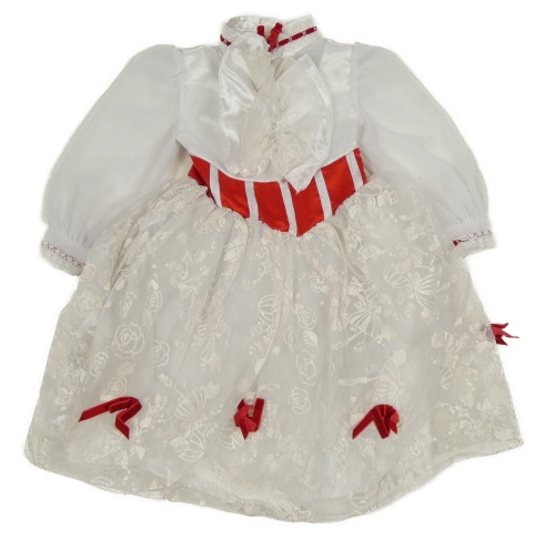 Nové - Bielo-červeno-smotanové šaty s volánikmi a růžemi a deštníky - Mary Poppins Disney